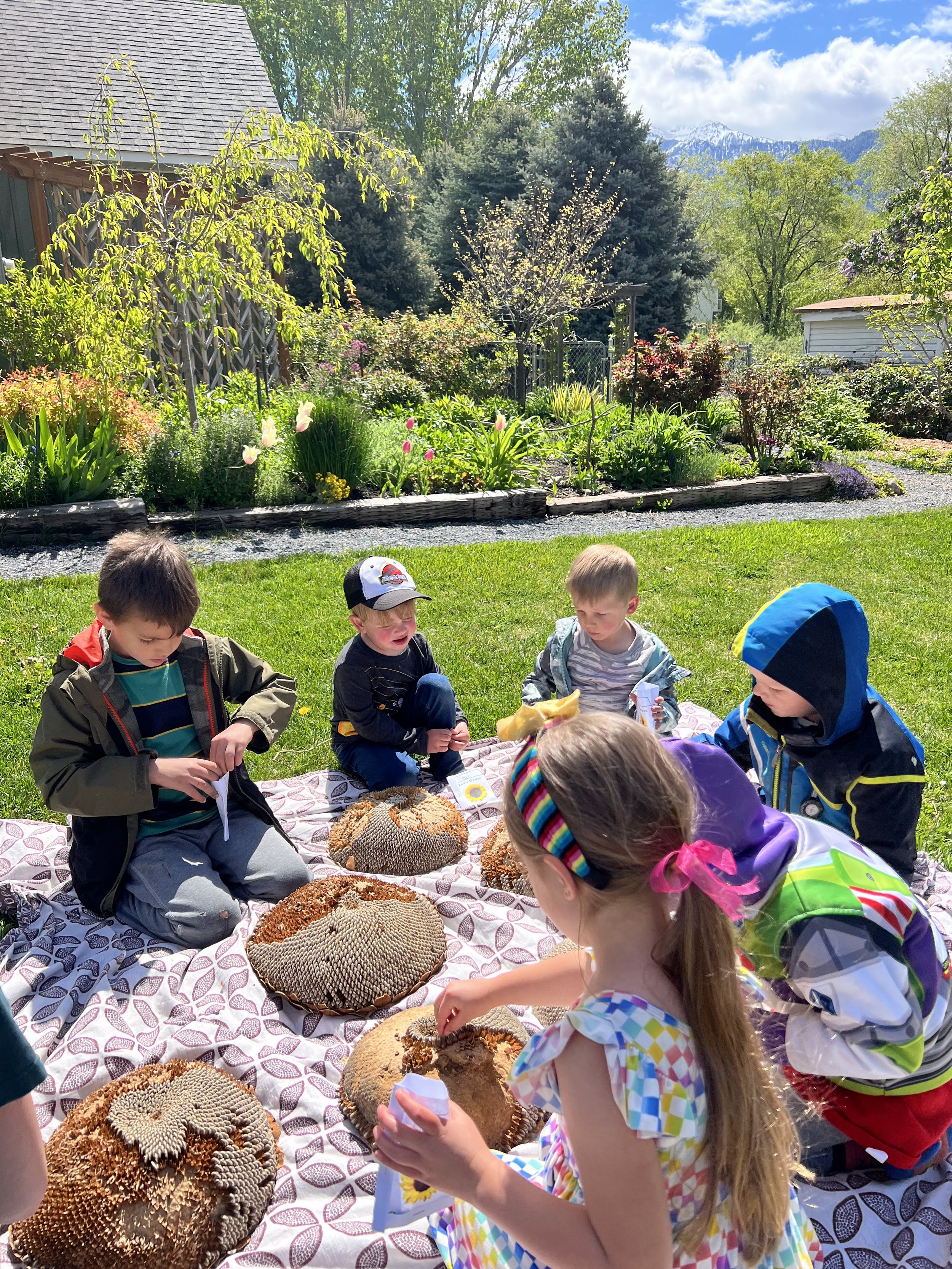We germinated bean sprouts, learned the life cycle of a sun flower, collected seeds, planted mammoth sunflower seeds, tomato seeds, basil, kale, and more!