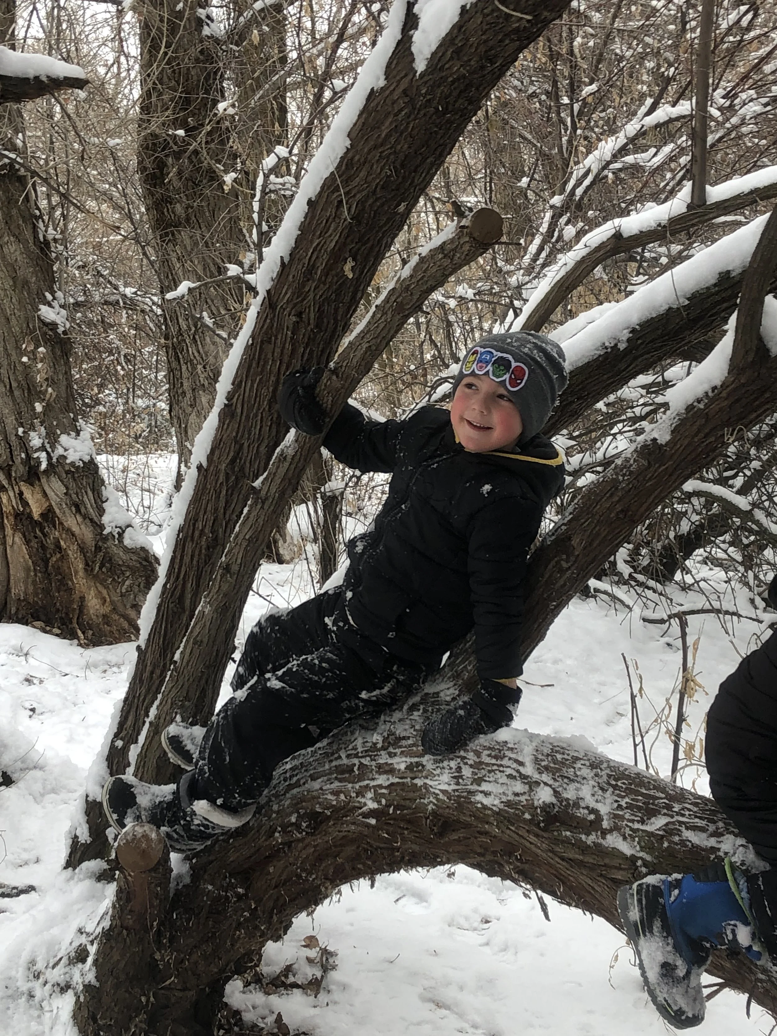 Sometimes our winter exploration is in January… sometimes it’s in November or March! We were lucky to have a very wintery January. We had multiple snow days. We would like to thank all grown-ups for packing all the necessary gear in an open top bag for us! This not only helps the teachers keep track of snow clothes, but helps the children learn responsibility over their own belongings.