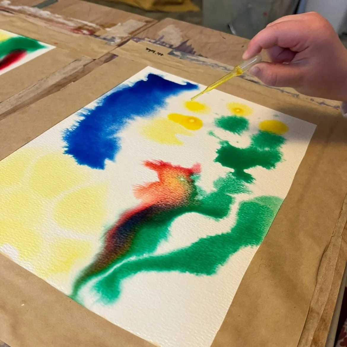 This month, the children had a wonderful time exploring creativity through three exciting art projects! We began with wet-on-wet watercolor painting, where we first soaked their paper in water then instead of using paintbrushes we used droppers to add liquid watercolor and let them do all the work, delighting in watching the colors spread and blend across the page. Once the paintings dried, they added a personal touch by drawing family portraits, creating meaningful artwork inspired by the people they love. Our final project, “Light on Dark” still lifes, introduced the children to contrast and detail as they drew objects on dark paper using chalk, shaded carefully, and used erasers to add highlights and fine details. These projects encouraged creativity, fine motor skills, and artistic confidence!