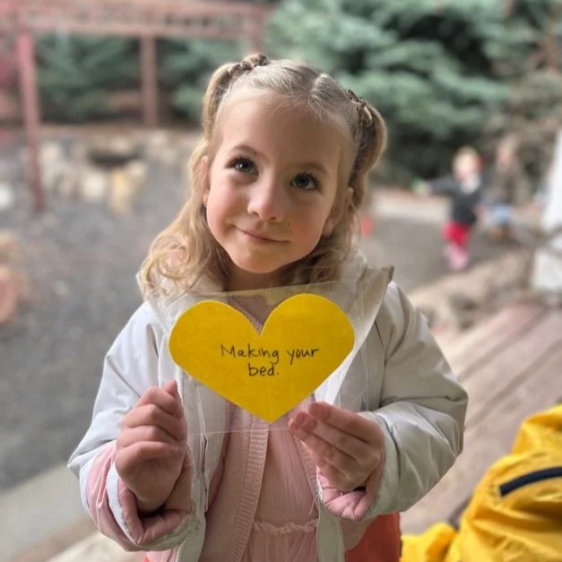 Children were invited to bring small, simple tokens to share, such as handmade cards, stickers, bracelets, or little trinkets. During our special snack time, we enjoyed homemade cookies and strawberries cut into heart shapes, which the children loved because it was a fun change from our usual snack. As the children passed out their gifts and treats to classmates, each child also received a homemade cookie to take home and share with their families. Later, we headed outside for a Love Day scavenger hunt, where the children searched for hidden cards with ideas for showing love—making our beds, putting away toys, creating a card for someone, and more. It was a joyful, heartfelt day filled with kindness, and we hope the love they practiced at school continues to shine in their homes and throughout our community.